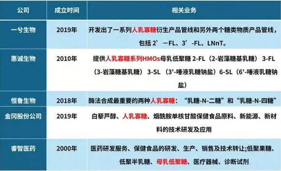除了上述企业,来自美国的生物技术公司Conagen和 ProZyme 、比利时生物技术公司 Inbiose等都凭借先进的HMOs生产技术,成为全球HMOs市场中的重要成员。