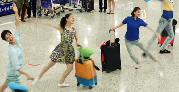 6月7日,一个极其普通的日子,在航班MM616的乘客正在等行李时,运输带上居然出现了各种被高飞、米老鼠、唐老鸭等迪士尼卡通玩具装扮的行李箱。在路人们正好奇时,几位穿着花裙子、沙滩裤的男男女女突然一个箭步上去取下了行李,机场大厅响起了嗨歌,然后他们居然开始跳舞了,惹得路人们一脸懵逼。