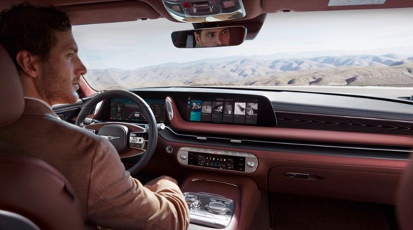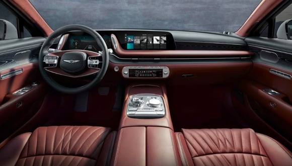 仪表盘的一部分向上摆动,与仪表显示屏幕相融合。双辐式方向盘具有独特的设计,气候控制板也没有与任何其他捷尼赛斯车型雷同。