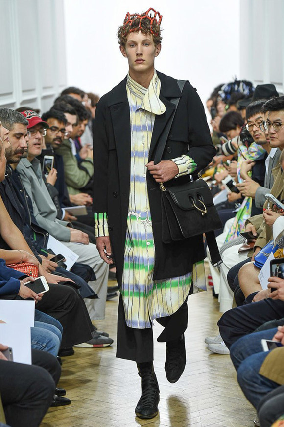 如果用“疲态”两字形容目前的时装界,想必没有人会反对。放眼望去,每日的时装新闻似乎不是关于某个集团的惨淡现状,就是令人眼花缭乱的“改革”:创意总监离任、即秀即买、男女装大秀合并或干脆落跑时装周……但Jonathan Anderson似乎并没有受太多影响,根据WWD和Business of Fashion对其的报道,这位30出头的设计师的日常生活被三部iPhone围绕,分别用来处理Loewe、J.W.Anderson以及私人事务,对于身兼两个品牌的创意总监,并且要一年内要完成超过十几个系列的巨大工作量,他却表示乐在其中——愿老天爷保佑他的精力和创造力。