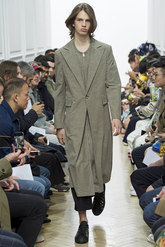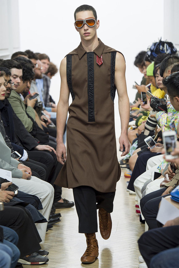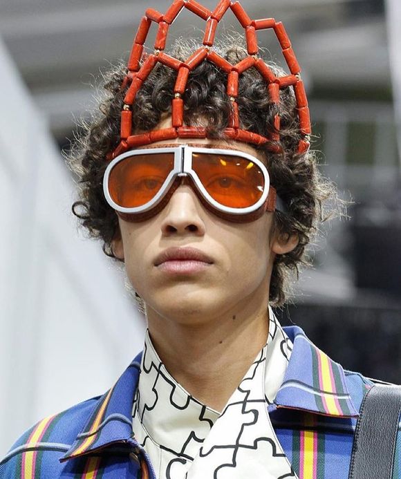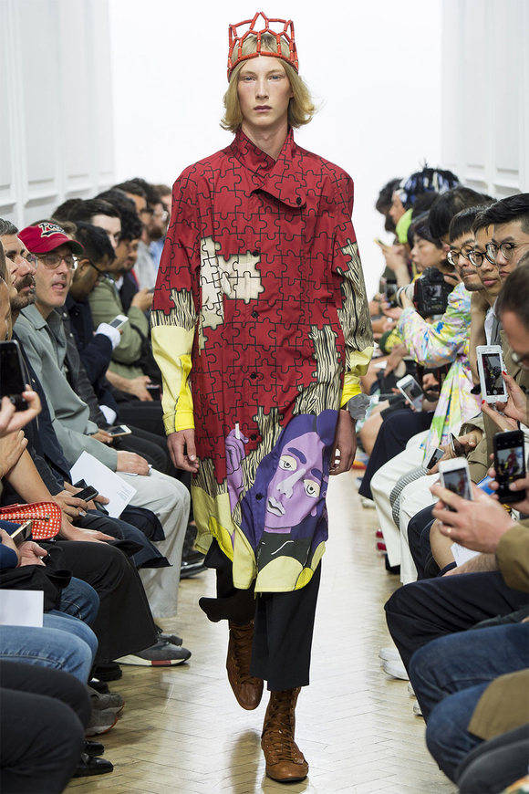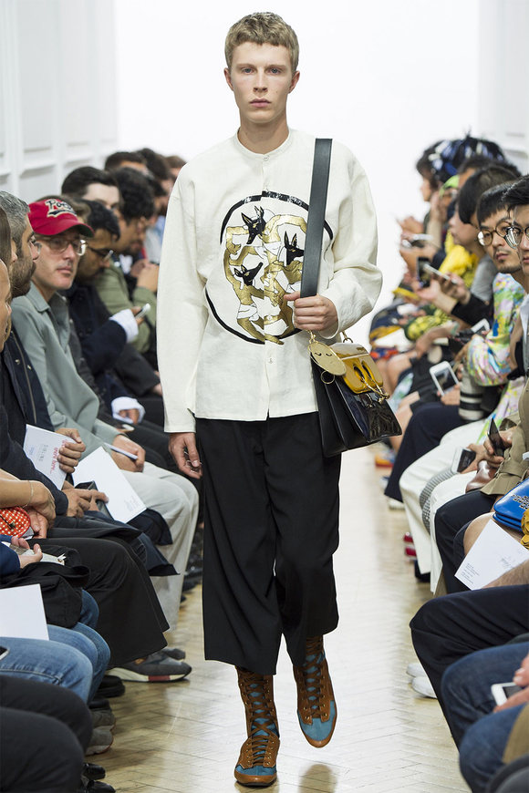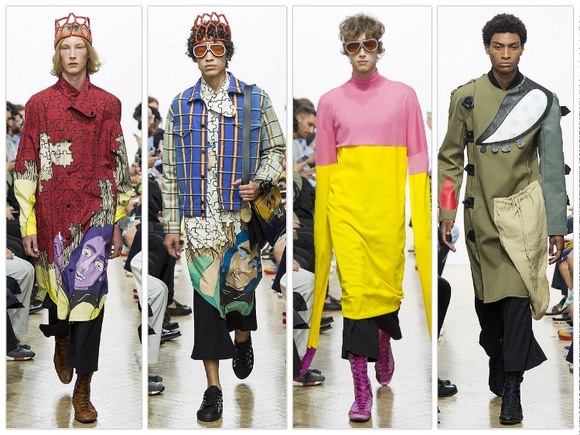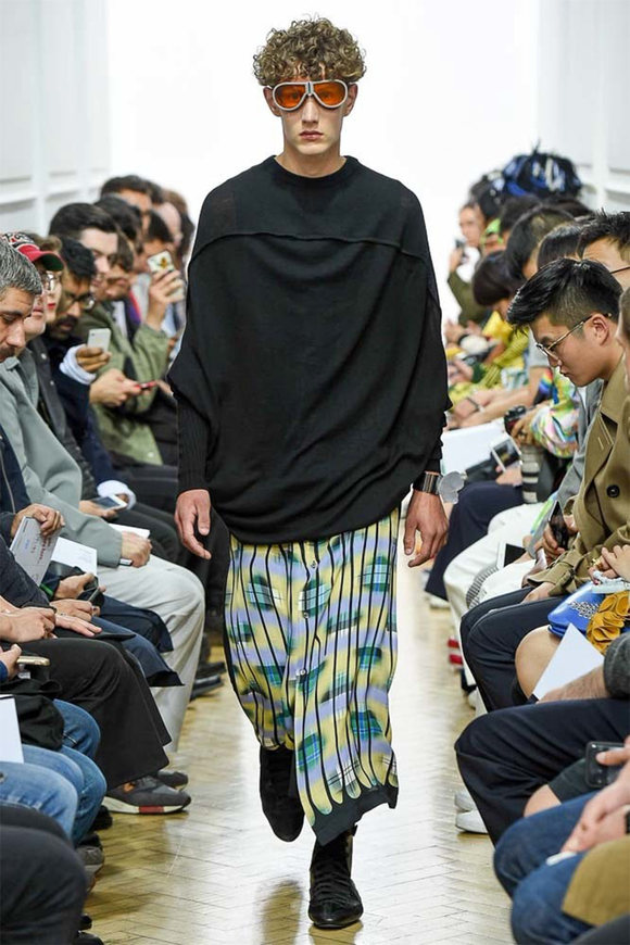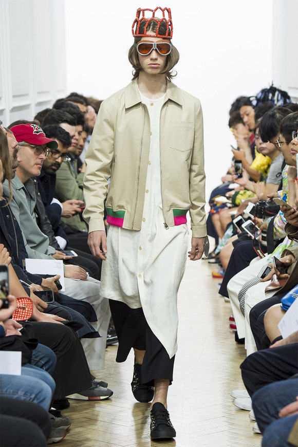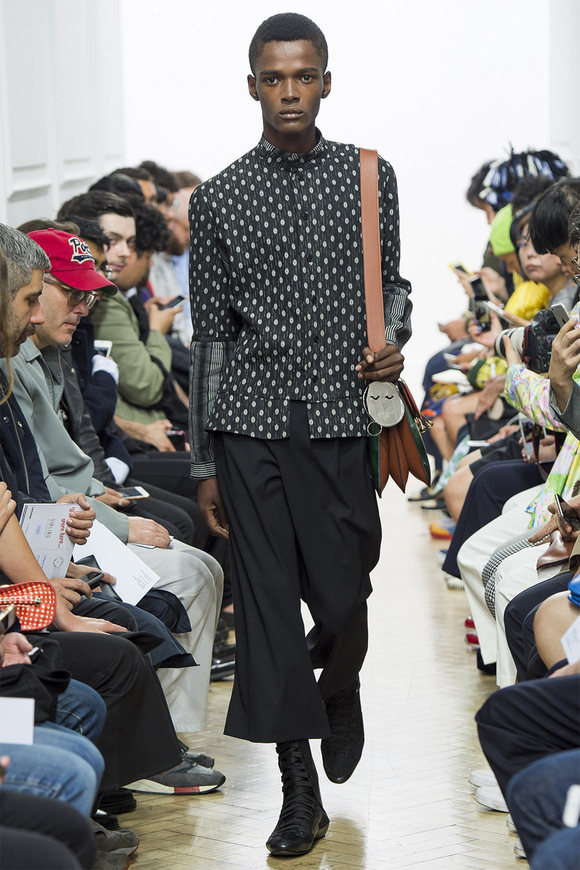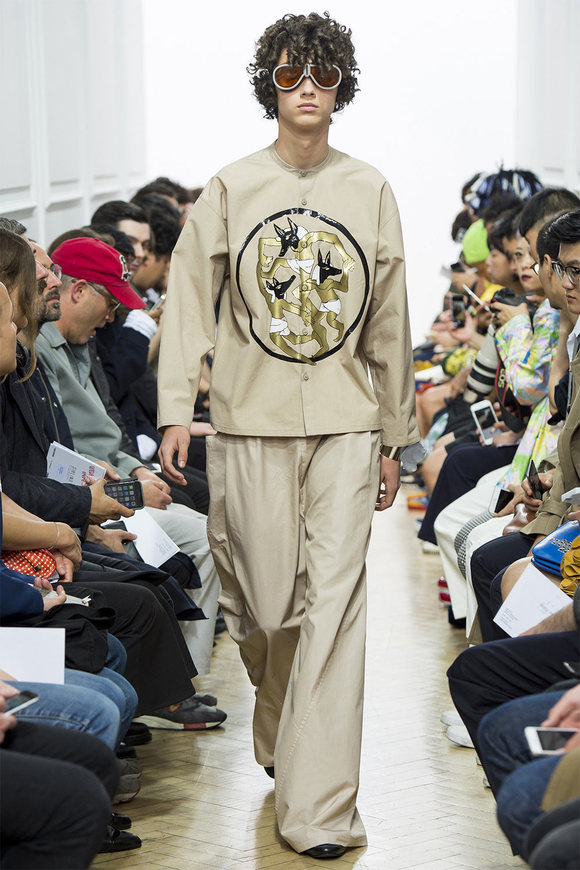 既然是以《小王子》作为线索,那么原著中出现的飞行员、小王子,商人等角色形象自然被Jonathan Anderson搬上了舞台,这点从模特佩戴的飞行员墨镜、王冠式样的头饰上不难看出,但可贵的是他没有因为过分强调童话角色感,从而把模特打扮成好似一个个毫无天分的戏剧学院留级生。此外,印花是本季值得最值得一提的成果:无论是拼图板块构成的图案还是印有埃及神话中掌管死亡的阿努比斯图腾,都给人温馨且梦幻的感觉,就像真的在看一本有着精美插画的童话书一样——更为重要的是,在设计师合理地使用下,它们在实际穿着上并不显得十分难以驾驭。