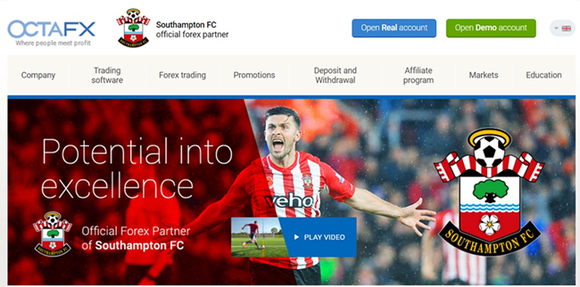在英国注册的离岸监管外汇经纪商OctaFX在2015年与英国南安普顿足球俱乐部(Southampton FC)签订了赞助协议。南安普顿目前在英超联赛中排名第6位。