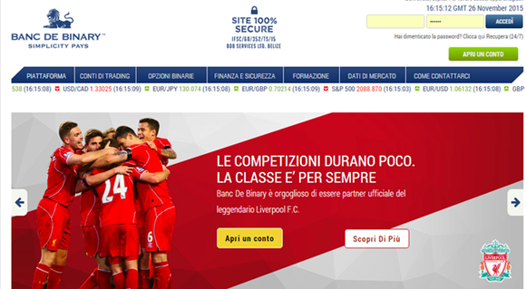 二元期权品牌Banc de Binary在2015年开始赞助英国利物浦足球俱乐部,目前双方协议已经到期。不过汇商近期报道,Banc de Binary今年来已经经历了塞浦路斯证监会(CyESC)计350,000欧元罚款、美国两大监管机构SEC及CFTC计1100万美元罚款。