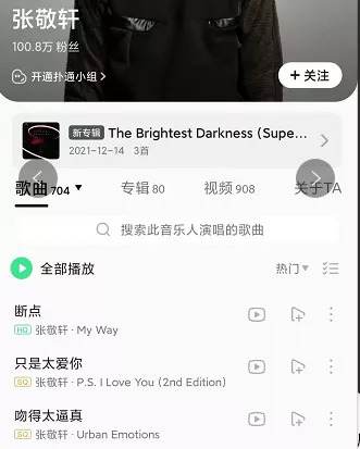 再举例21世纪脱颖而出的80后歌手张敬轩,大多数人想起来也只能想到《断点》或者《吻得太逼真》。
