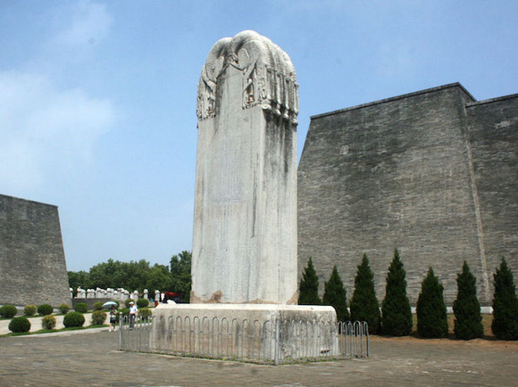 武曌也是一位杰出的艺人,一个令人眼花缭乱的马戏团的头目,每一个重大仪式、庆典的司仪,她知道如何举办一场盛典。她的佛教明堂直抵苍穹——它们真的是当时全球最高的建筑。天枢这样的纪念物——一根上置四龙立捧火珠的发光铜柱——伫立在神都洛阳的洛河之滨。旋转的舞者用身体扭出汉字的形状,高唱她的赞歌。佛教庆典上,铜制佛像从五色丝绸帐篷下的地底升起。目睹这样的盛况令人下巴掉落、眼睛大张。人们能够感受到惊奇和敬畏。