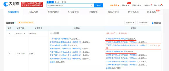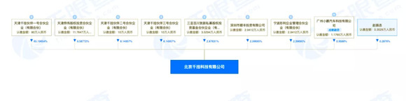 天眼查App显示,12月17日,北京千挂科技有限公司发生工商变更,股东新增百度关联企业三亚百川致新私募股权投资基金合伙企业(有限合伙),持股约2.88%,位列第四大股东。