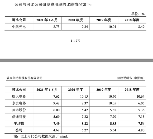 然而,报告期内华达股份研发费用率远低于同行业可比公司平均值,公司称主要系目前经营规模正在持续稳定增长,现有研发人员、资金、设备及场地等资源有限,公司研发方向主要聚焦于航空航天、武器装备、通讯领域,本次IPO拟募资9500万元用于研发中心建设项目。