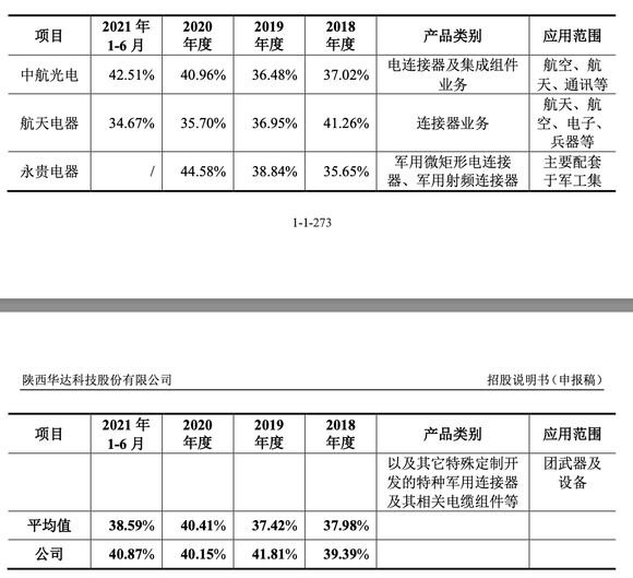 整个军工连接器赛道而言,华达股份营收规模不及行业龙头中航光电(002179.SZ)、航天电器(002025.SZ),但是连接器业务毛利率与前者不分上下。