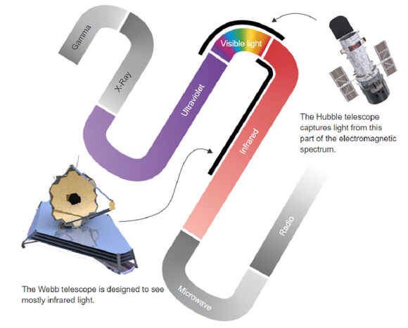 ▲韦布空间望远镜和哈勃空间望远镜观测的光线波长范围(来源:NASA)