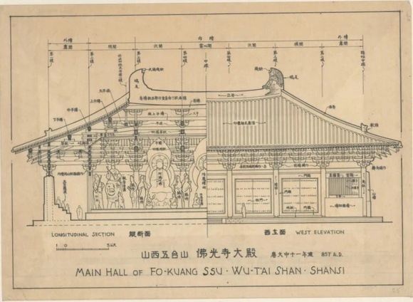 一九三七年七月,梁思成、林徽因发现山西五台山佛光寺东大殿唐构,并对其模数制度做了深入研究,证实了梁思成一九三二年在独乐寺调查报告中做出的关键性判断:“以材栔为度量之制,辽宋已符,其为唐代所遗旧制必可无疑。”