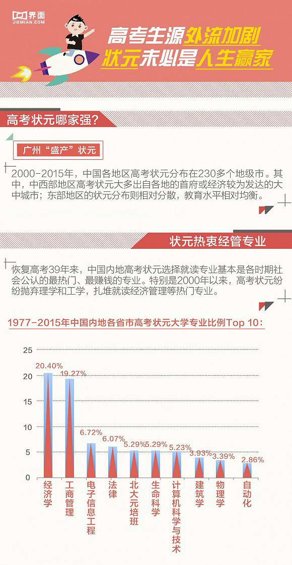 【图解】高考生源外流加剧 状元未必是人生赢家