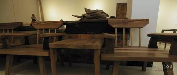 屮房主打老木头改造的器物。小到一个茶托、茶盘,大到一套茶桌、茶椅,几乎每一样东西都是一块木头的重生记,是它们在这个世上存活的温度。