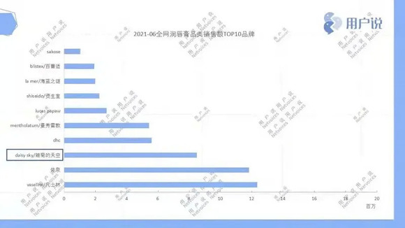 上文我们曾提到,目前唇部护理的市场仍然以润唇膏为主。用户说统计数据显示,淘宝天猫上唇部护理6分细分品类中,润唇膏以年销售额14.2亿元占76.64%的唇部护理市场。同时根据数据观测,2021年6月,全网润唇膏TOP10品牌中,占据榜首的几乎都是海外品牌,例如资生堂、曼秀雷敦、DHC等。