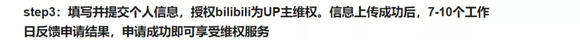 bilibili UP主版权保护计划中维权反馈期限