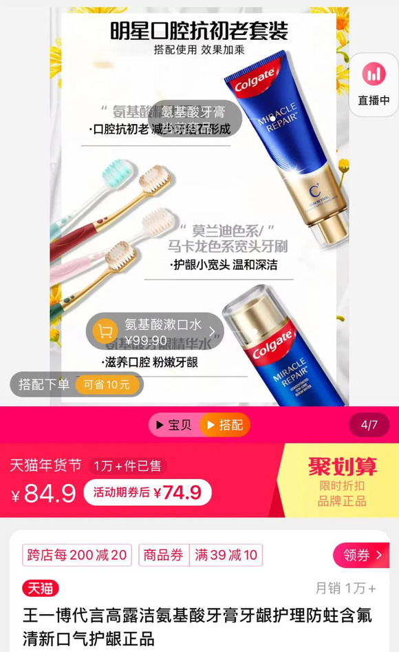 除了此类将牙膏与口腔、身体疾病挂钩的操作,随着消费者对产品功效的关切,牙膏也搞起了“护肤化”。例如高露洁推出的一款氨基酸牙膏,号称拥有纯度高达98.5%的氨基酸,可以修护牙龈、抗初老功效。