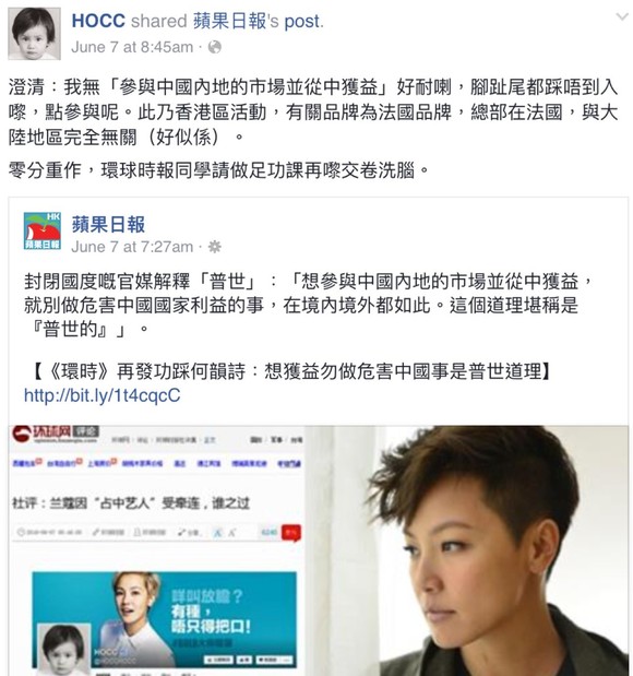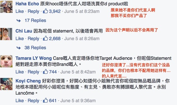 根据何韵诗方面说明,是兰蔻中国地区对香港公司施加压力,因此做出了这个回应。