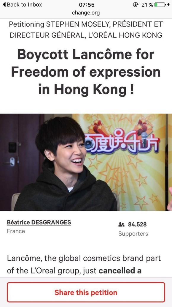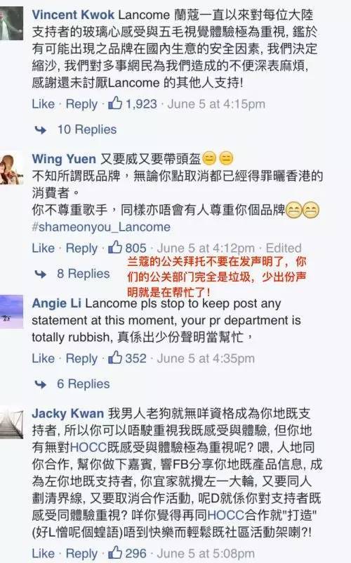 于是...不仅仅是大陆抵制兰蔻,香港人也要抵制了。