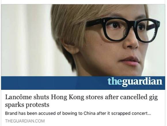 兰蔻单方面取消合作,还说是安全考虑,看到这两个字香港民众就直接高潮了,觉得HK又不是叙利亚有毛安全问题?于是开始讲被ZG压迫才恐怖之类乱78糟的
