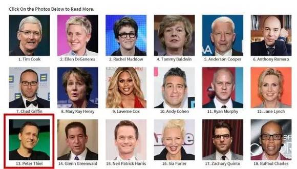 (2015年全美最具影响的同性恋,Peter Thiel排名第13)
