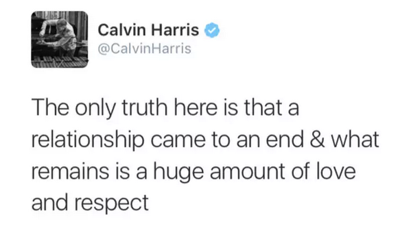 所以这一切看起来就没那么不可思议了。而听闻此事,与霉霉分手不久的前男友Calvin Harris震怒之下删掉了推特上所有与霉霉相关的内容,包括之前发的“love and respect”(爱和珍重)的分手推文。