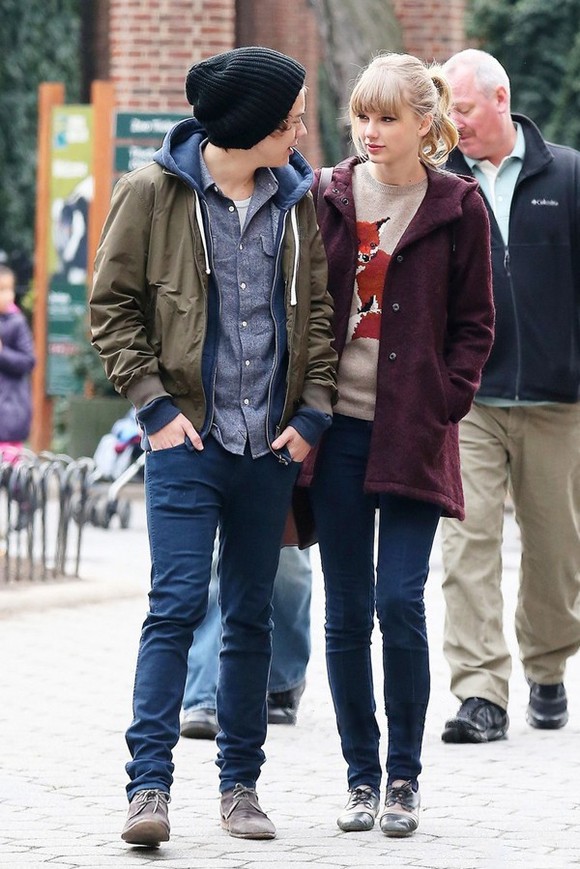 泰勒和英国小破团One Direction中的Harry Styles的相恋曾引爆娱乐圈,据说还是好友贾斯汀·比伯牵的线。94年出生的卷毛“小正太”哈利比霉霉小5岁。据说在哈利15岁的时候,看了一段taylor的视频就被迷住了“OMG,她真的好好看,我愿意为她做一切事。“后来追求了很久霉霉才答应跟他在一起。