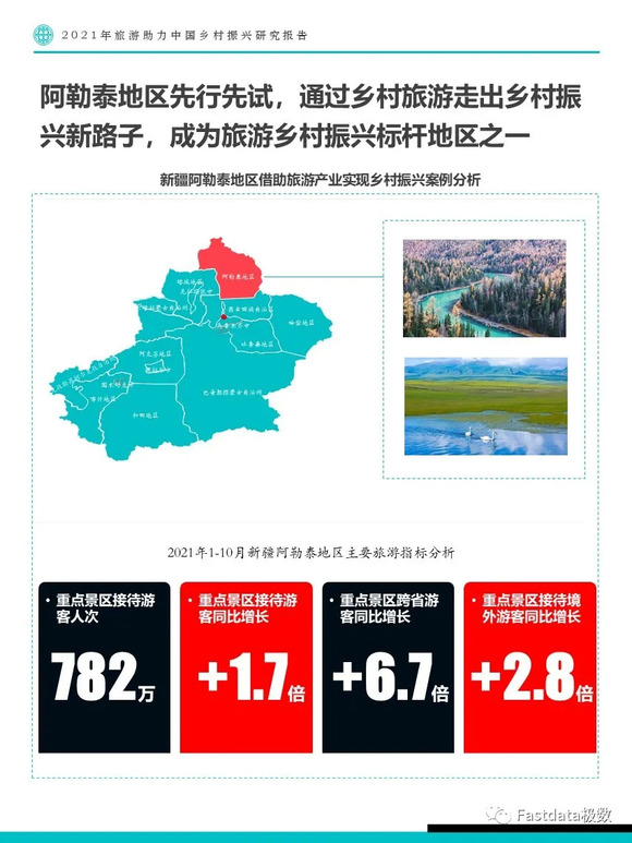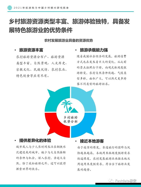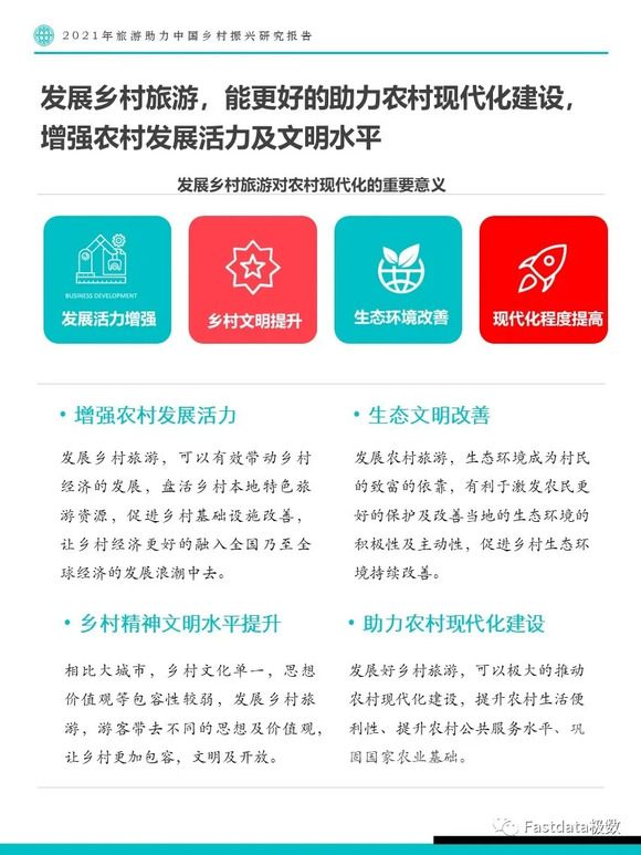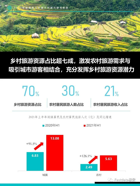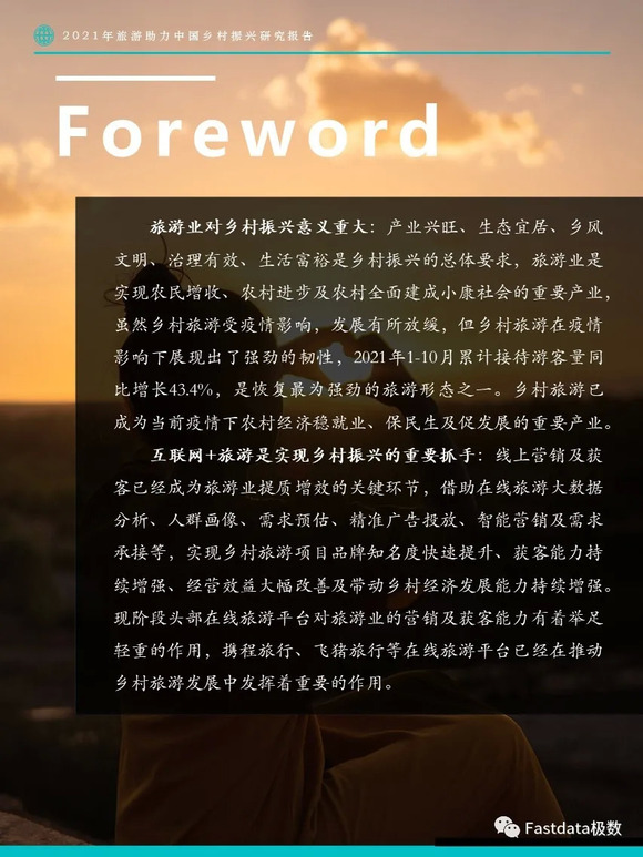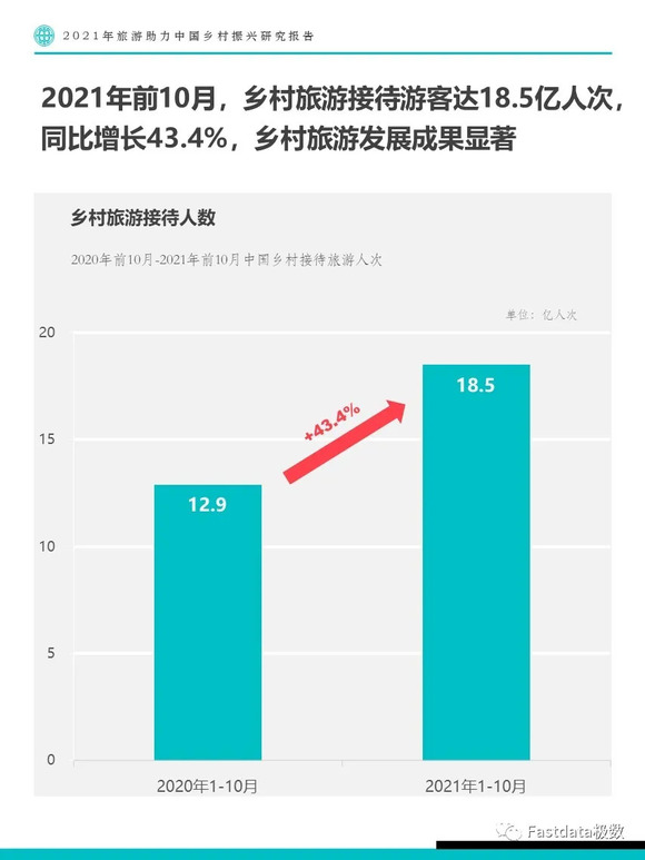 旅游业对乡村振兴意义重大:产业兴旺、生态宜居、乡风文明、治理有效、生活富裕是乡村振兴的总体要求,旅游业是实现农民增收、农村进步及农村全面建成小康社会的重要产业,虽然乡村旅游受疫情影响,发展有所放缓,但乡村旅游在疫情影响下展现出了强劲的韧性,2021年1-10月累计接待游客量同比增长43.4%,是恢复最为强劲的旅游形态之一。乡村旅游已成为当前疫情下农村经济稳就业、保民生及促发展的重要产业。