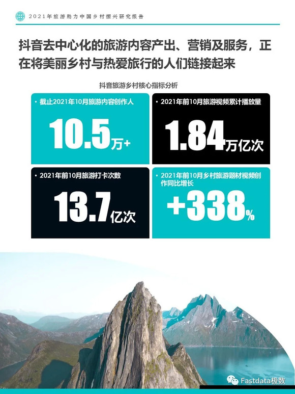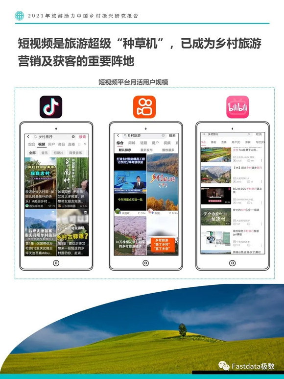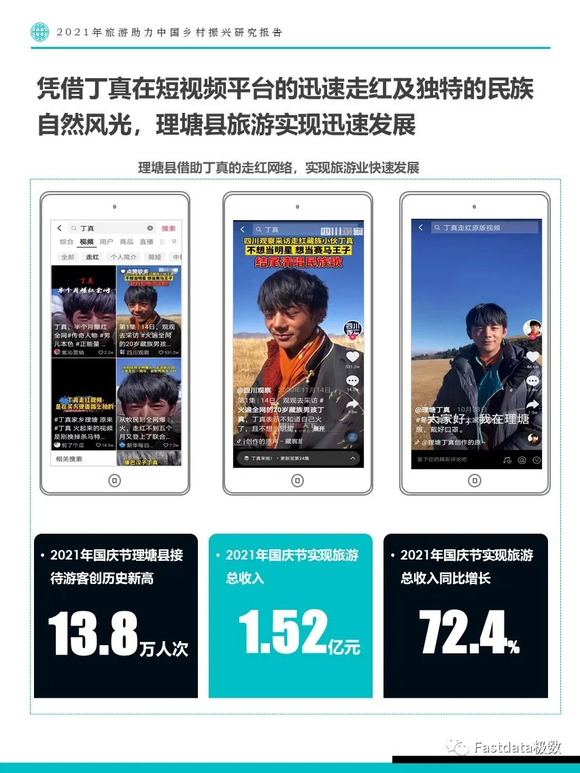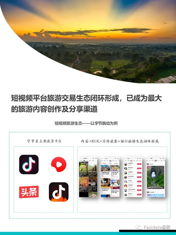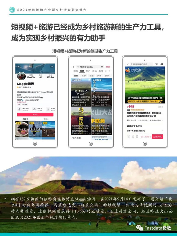 新内容流量红利乡村旅游崛起:随着互联网自然增长流量红利期的结束,互联网流量在不同平台或载体之间的流通将更加频繁,短视频平台作为近几年持续爆发的新内容流量平台,用户规模持续增长,内容生态持续完善,旅游营销及商业化场景不断丰富,短视频/直播+旅游已经成为旅游营销获客的重要形态,正在不断重构在线旅游的商业模式、产品形态及需求承接流程。短视频/直播平台作为去中心化的内容流量平台,乡村旅游项目运营者、旅游KOL及素人都有机会通过短视频/直播助力乡村旅游的发展,实现旅游项目在短时间内迅速爆发。例如丁真带火了理塘县的旅游业,乌兰哈达火山地质公园因一段视频迅速游人如织。旅游业线上运营及营销正在迎来全新的内容流量红利期,乡村旅游运营者应当积极拥抱新内容流量生态红利,实现乡村旅游的爆发式增长,助力农民增收、农村农业发展及乡村振兴。