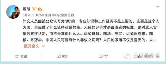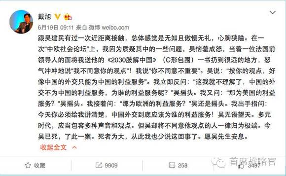 司马南也在微博里写道,“很欣赏他(吴建民)的外交风度。”