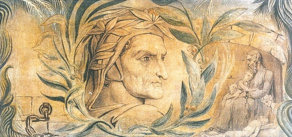 布莱克批评但丁的残忍——这种批评不是针对天主教信仰,而是针对其复仇道德观。“但丁看到恶魔的地方我什么也没有看到。” 他如是说。在布莱克为海利的藏书室画的但丁头像的蛋彩画中,画面左边是脚镣,画面右边是乌哥利诺和她的儿子们在监狱里的景象。这幅画的文字说明是:“哦神父,你的上帝会像这样复仇吗?”