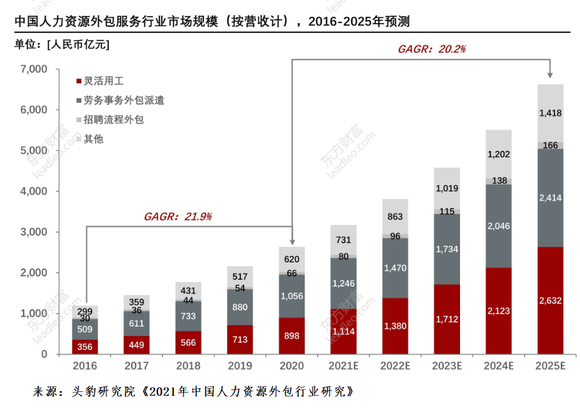 新发展趋势是,外包领域的动向,对每家企业和每个劳动者来说,都已不是隔岸观火,而是戚戚相关——中国人民大学《中国灵活用工发展报告(2022)》蓝皮书显示:2021年中国有61.14%的企业在使用灵活用工,比2020年增加5.46%,这意味着有更多企业倾向于扩大灵活用工的规模。而据头豹研究院《2021年中国人力资源外包行业研究》,企业灵活用工是中国人力资源外包服务行业发展的新增长点。
