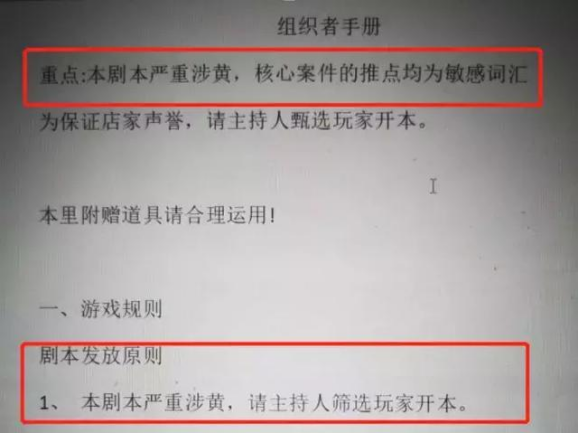 私下亦有剧本杀创作者表示,“目前行业中总量有大概3000个剧本,其中涉及到敏感内容打擦边球的有上百本,而重度黄色暴力的内容也有十几个。在全国数千个线下剧本馆内,至少有三分之一以上的店家都或多或少有这种噱头本。”