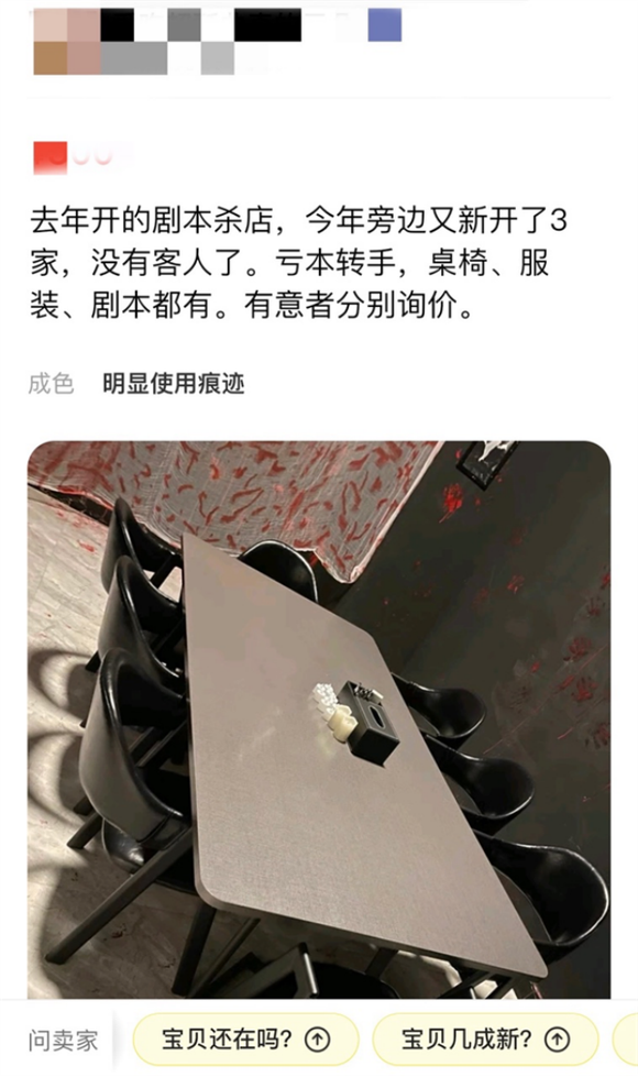 剧本杀店倒闭,所有剧本亏本清仓甩卖”“附近又开了3家店,没客人了。桌椅道具都有,救救孩子吧”“跟合伙人意见不合,店不开了,白菜价带走”……闲鱼上剧本杀店主们的转卖贴文都不约而同地揭示着一个残酷的真相,这个行业刚开始热乎就在面临大浪淘沙,没有客人的店铺只能收桌离场。