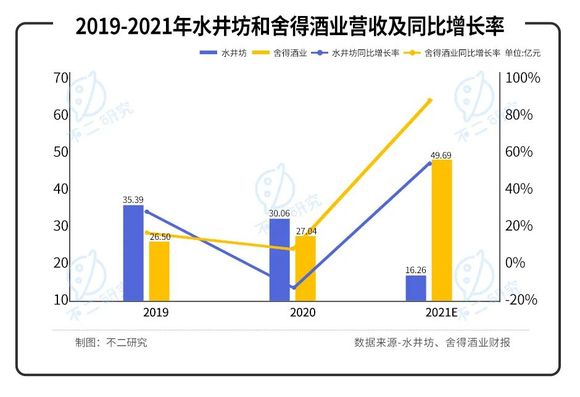 舍得酒业的业绩快报则显示,2021年其营业收入同比增长约83.80%,经测算后2021年营收约为49.69亿元。