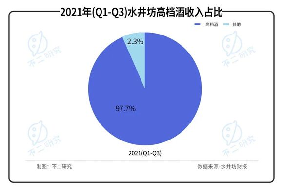 水井坊精确定位细分市场,一直将自己定位在次高端和高端,高档酒是水井坊的主要收入来源,2021年Q1-3高档酒收入占比为97.7%。