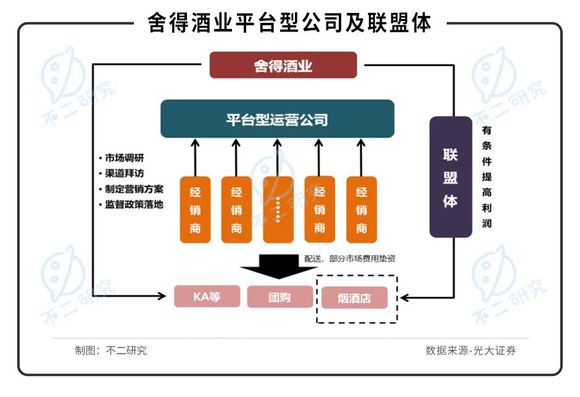 2012年前,舍得酒业与大多川酒品牌一般,采用传统大商制进行全国化拓展。2013-2015年,为应对“三公消费”限制而开始推广平台型渠道商。