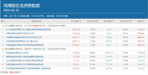 除了小鳄鱼以外,知名游资常用席位东亚前海证券上海分公司当日也出现在鸿博股份买方前五位中,买入金额为6077.13万元,卖出金额为2254.81万元。