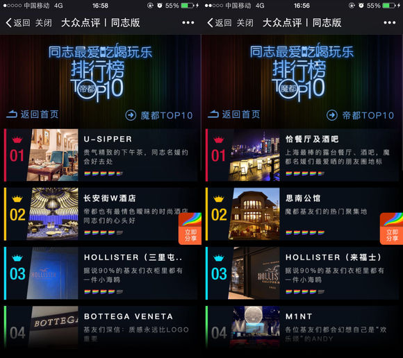 想要帝都魔都奢华生活指南,请看“同志版”大众点评。