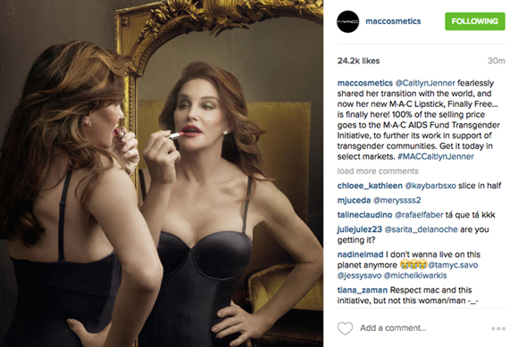 比如,美国品牌Doritos曾经推出过彩虹色的玉米片,奥利奥在社交网络上发布了虚拟的彩虹饼干,星巴克推出了彩虹杯、用彩虹旗装饰,Tiffany推出了以同性情侣为主角的订婚戒指宣传海报,M.A.C更是邀请了变性明星凯特琳·詹娜担任Viva Glam彩妆慈善系列代言人。