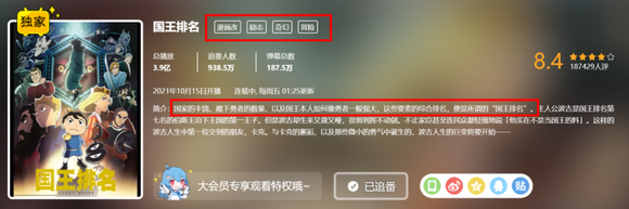尤其是B站对《国王排名》给出的类型定位为励志、奇幻和冒险,给出的剧情简介亦是相当炫酷且具有吸引力: