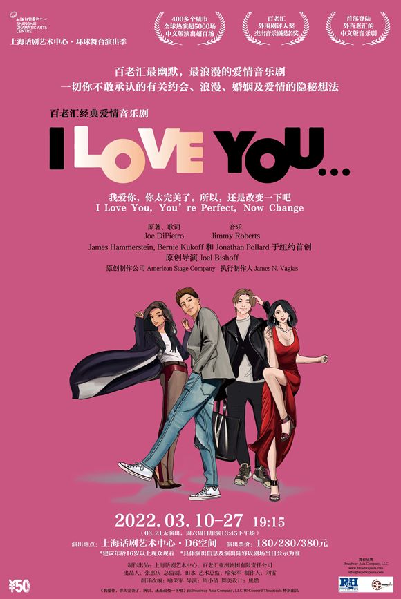 作为美国外百老汇连续演出时间非常长的一部小剧场音乐剧,《I LOVE YOU…》曾被翻译为14种语言,在全球400多个城市演出超过5000场,并荣获“百老汇外围剧评人奖”杰出音乐剧提名奖及“纽约戏剧委员会奖”最佳时事音乐剧奖。该剧颠覆传统音乐剧形式,全剧仅由钢琴和小提琴伴奏,两男两女四位演员分饰多角,在16个情境片段中讲述一段段关于爱情和婚姻的故事,其中反映的种种都市情感问题——如父母催婚催育、单身找对象难、令人抓狂的婚后生活——对当下的中国观众来说也丝毫不陌生。