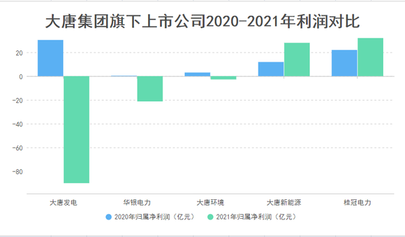 另一家大唐旗下的上市公司大唐环境2021年财务预告显示公司净利润预亏2.8亿-3.8亿;
