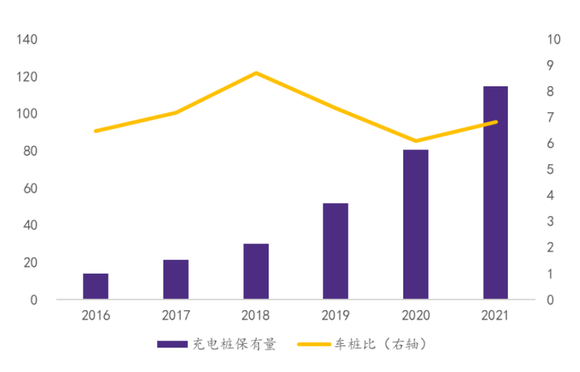 截至2021年底,国内公共充电桩车桩比仅为6.84:1,也就是说,近7台车才共享一个公共充电桩,同时充电时间又长,可想而知,现在的车桩比距离车主们的理想仍巨大的鸿沟。