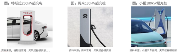 图5:部分电动车企业的超充桩,资料来源:天风证券