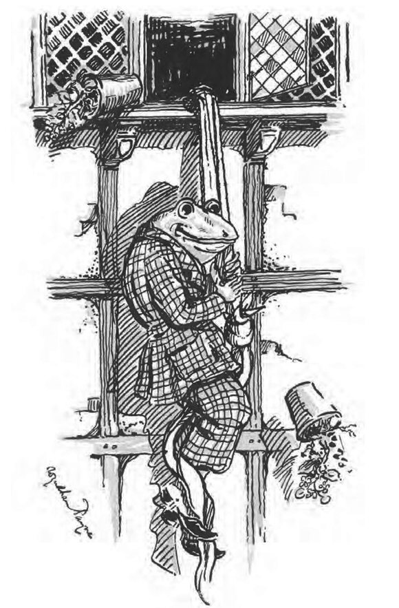 水獭对所有阶级有着从容熟悉的态度,可能是众动物中最接近贵族的。至于兔子,则完全是一副傻模样,鼹鼠开场就叫它们“洋葱酱”,因为洋葱酱是烤兔子的配料,后文还提到兔子是无休止忙碌的动物,如同人类中的“穷忙”一族,忙于繁殖和应付家庭生活,无暇沉思片刻。注释指出,《小熊维尼》里也延续了傻瓜兔的主题——除了傻瓜兔,还有其他证据表明《柳林风声》的痕迹贯穿在《小熊维尼》中。