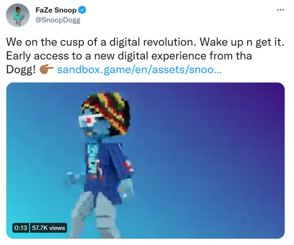在最近的一条社交动态中,Snoop Dogg这样说道,“我们正处于数字革命的风口浪尖。醒醒吧,抓住它。”