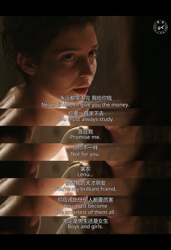 对五六十年代那不勒斯方言的坚持使用,亦是科斯坦佐建构“那不勒斯性”的核心策略:导演不得不在前期对大量非专业演员进行长期训练,以便让他们能够在剧中说出一种纯正的“1950年代那不勒斯口音”,即便是当代的意大利观众也只能凭借字幕理解剧中台词。这并非无意义的坚持,事实上,“那不勒斯方言”在这场关于变革的叙事中扮演着极为重要的角色,小城方言、拉丁语、希腊语,剧中所有的语言符号背后都指向悬殊的阶级与身份差异,而这种“差异”正是该时期底层渴望变革的重要原因之一。
