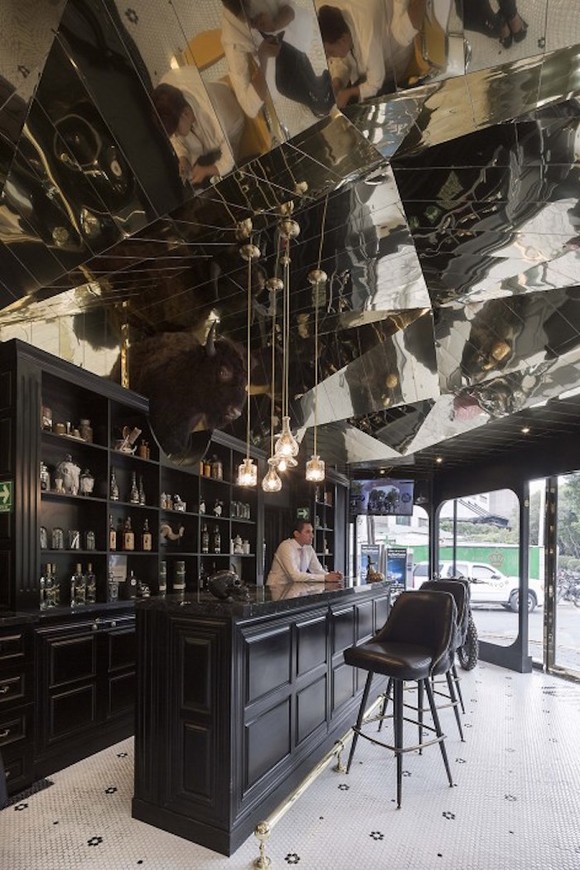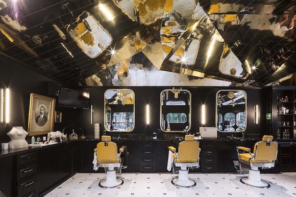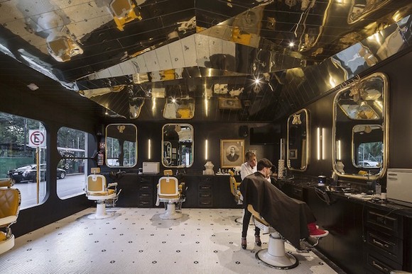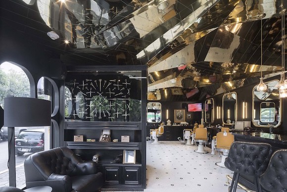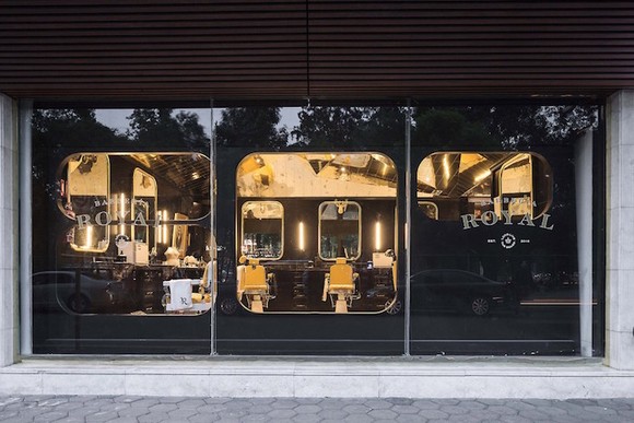 在墨西哥首都墨西哥城的市中心,有一家叫作Baebaria Royal的理发店。它一侧挨着当地以历史悠久闻名的Reforma大街,街对面则是热门景点Chapultepec公园,周围还围着一圈高档酒店。在这样的环境下,这家被墨色玻璃框住、不论白天还是晚上都能由镜子折射出暖黄色灯光的临街店铺依旧惹人注目。