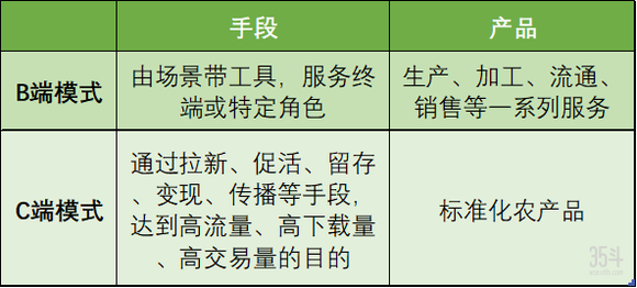 图:农业APP领域,B端模式和C端模式对比