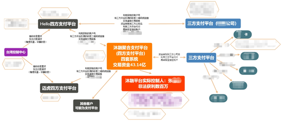 期间,第三方支付公司广东汇卡副总裁刘某某向控制“沐融”第四方支付平台的张某某提供3687个商户号,与“helloepay”和尹某某控制的“迈虎”第四方支付平台对接,帮助境外违法人员收付非法资金43.14亿元。