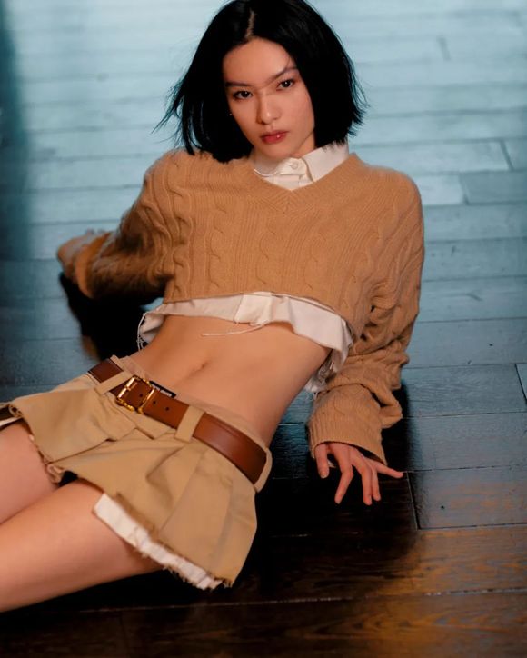 诸多明星上身爆火的「露腰」套装作为封面,话题虽有,驾驭难度不可小觑,仍能从中看出成片的高低争议。相较于Prada,Miuccia建立的同名品牌Miu Miu更能折射出Miuccia Prada本人的风格特色。